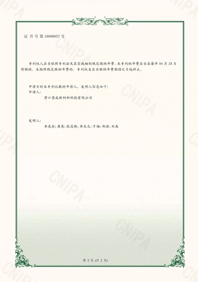 Copyright(C)2021,Yingkou Changcheng New Material Technology Co., Ltd. All Rights Reserved.